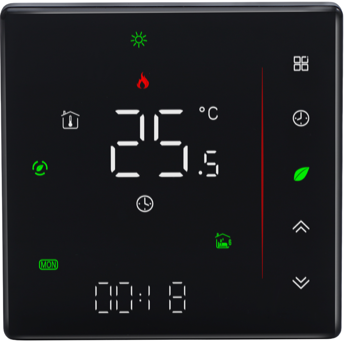 - dotykowy termostat programowalny NEXO WiFi z aplikacją na smartfony umożliwiającą sterowanie z dowolnego miejsca na świecie