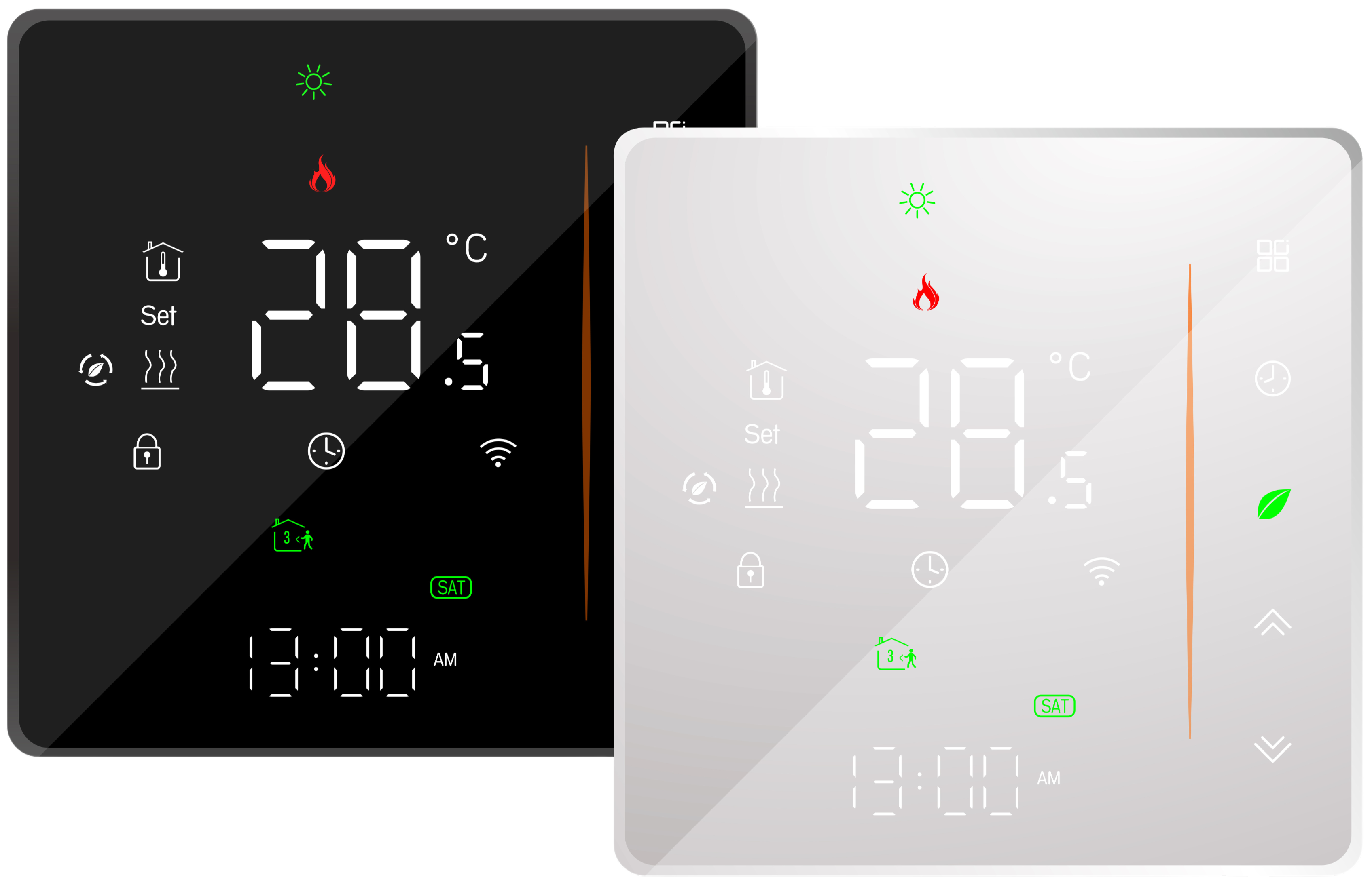 - dotykowy termostat programowalny NEXO WiFi z aplikacją na smartfony umożliwiającą sterowanie z dowolnego miejsca na świecie