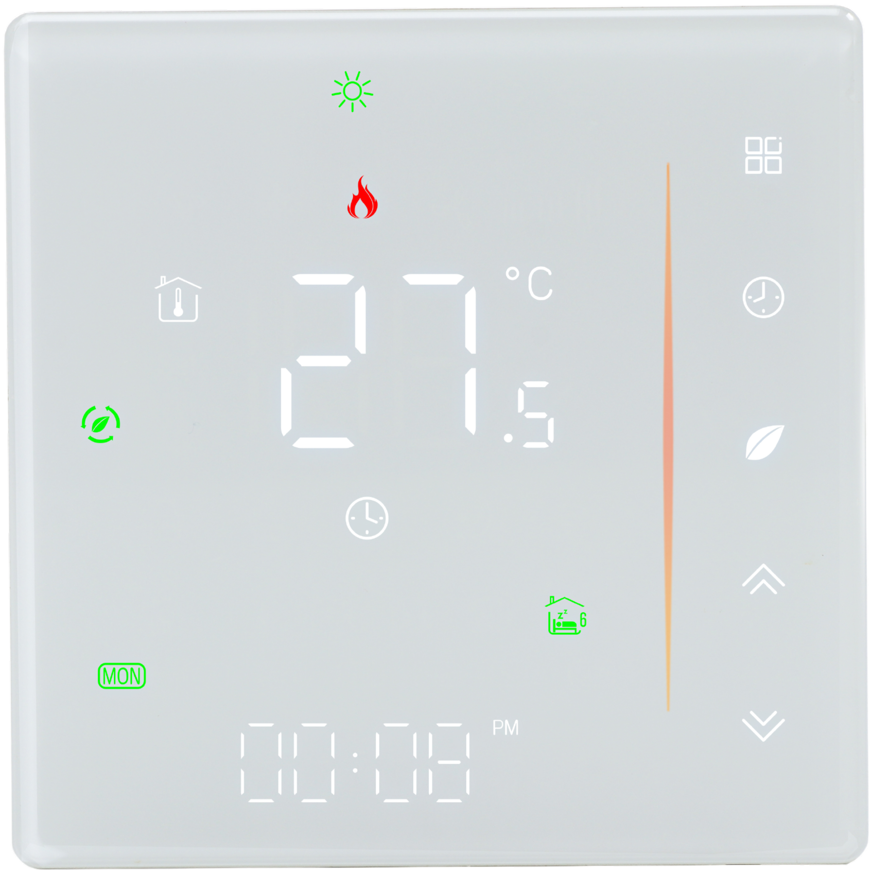 - dotykowy termostat programowalny NEXO WiFi z aplikacją na smartfony umożliwiającą sterowanie z dowolnego miejsca na świecie