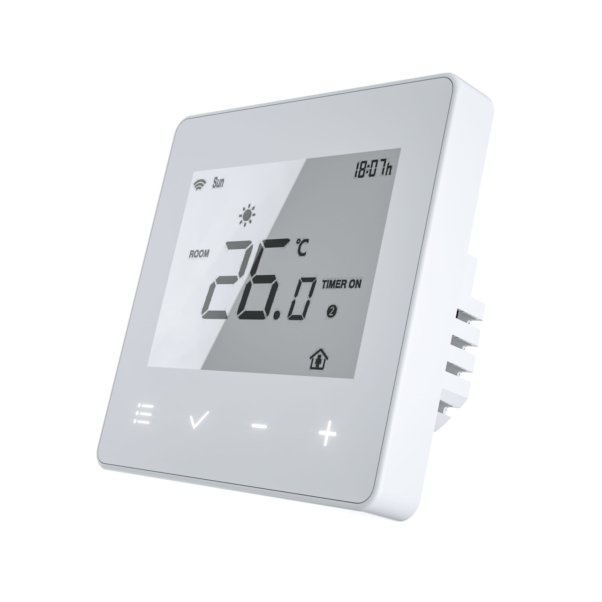 Termostat. Nie tylko zarządza ogrzewaniem podłogowym, ale i dobrze wygląda. Już nie będziesz musiał więcej zastanawiać się gdzie ukryć termostat z uwagi na jego nieatrakcyjny design. W zestawie REGNUM KIT do wyboru termostat REGNUM w kolorze białym lub czarnym.