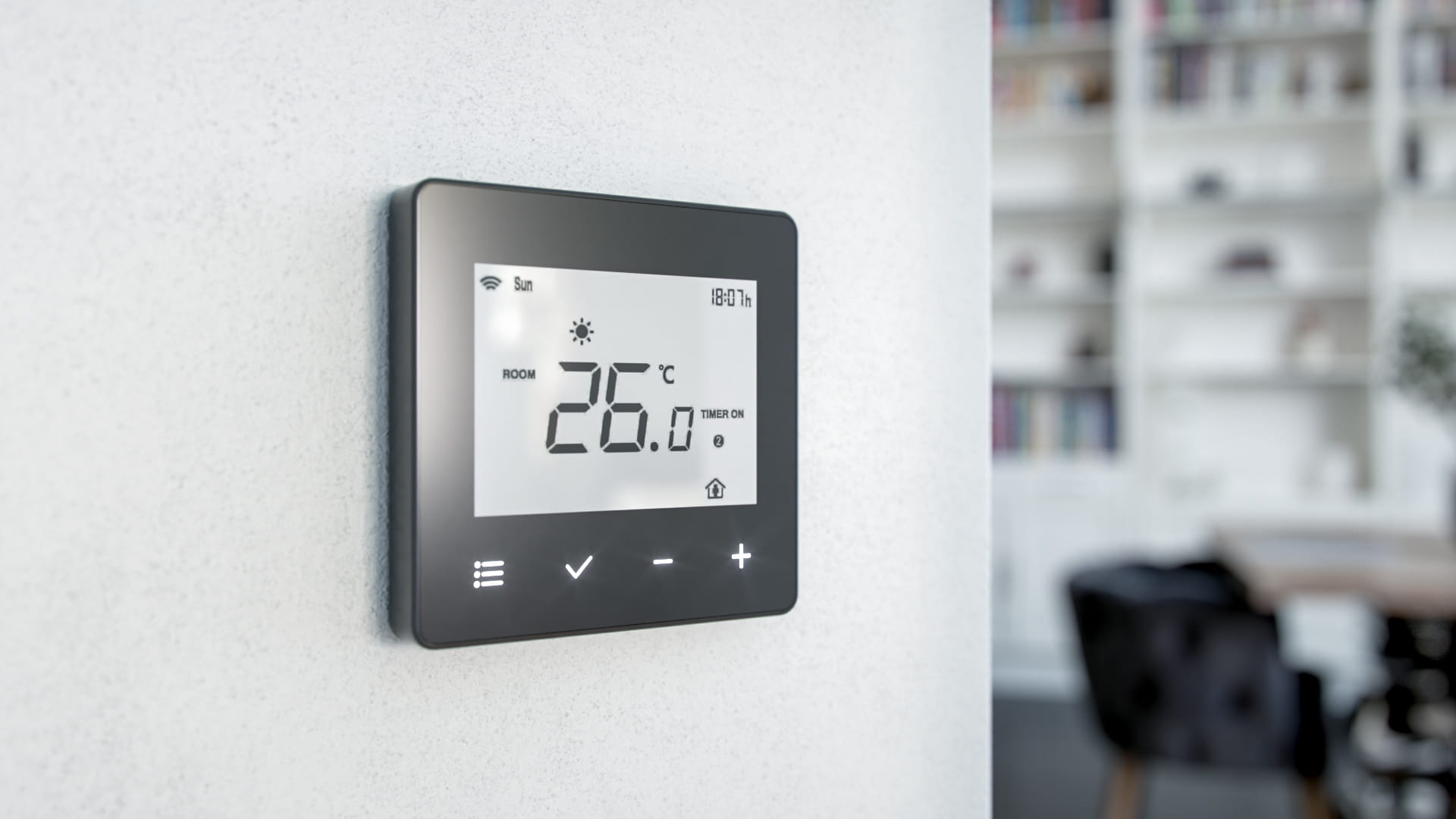 Termostat. Nie tylko zarządza ogrzewaniem podłogowym, ale i dobrze wygląda. Już nie będziesz musiał więcej zastanawiać się gdzie ukryć termostat z uwagi na jego nieatrakcyjny design. W zestawie REGNUM KIT do wyboru termostat REGNUM w kolorze białym lub czarnym.